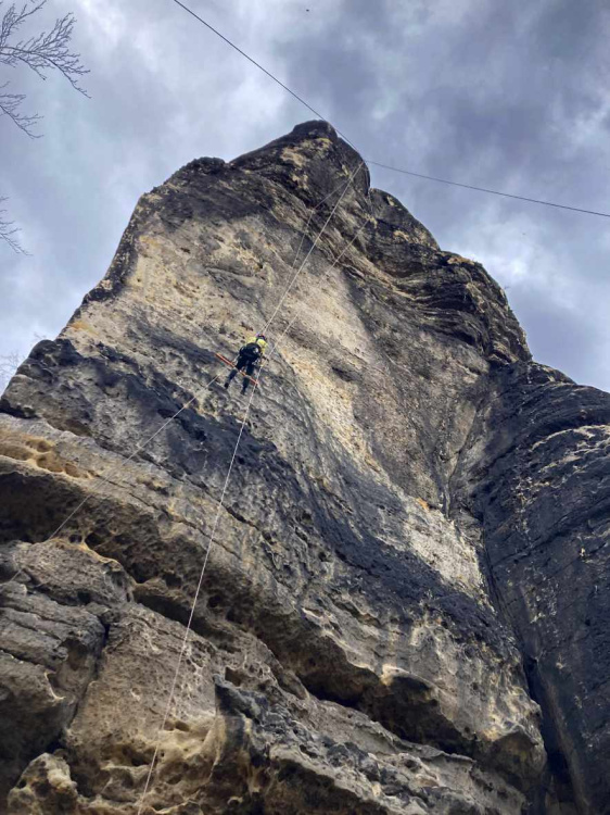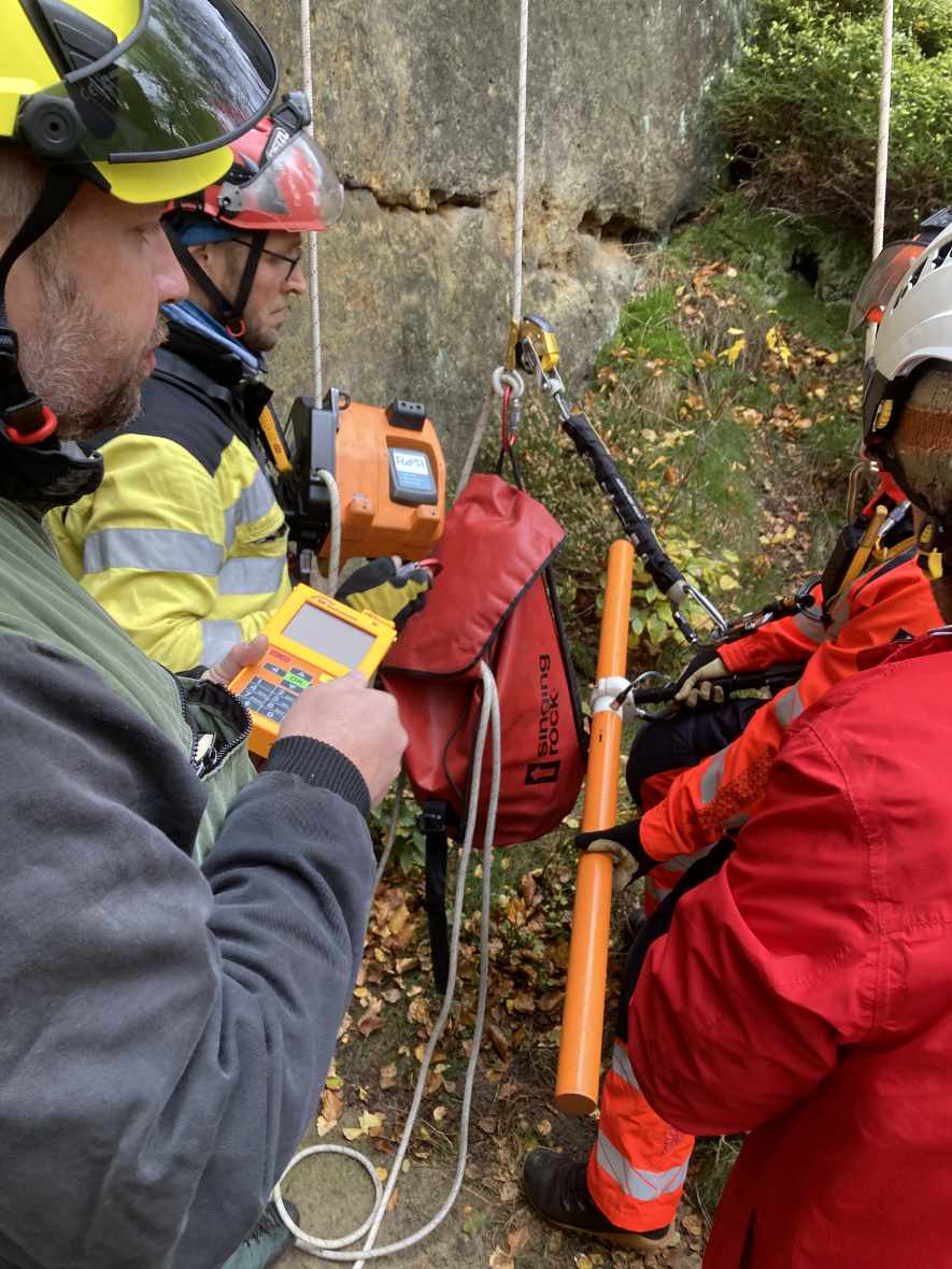 Geofyzikální měření na skále Meurerturm, Saské Švýcarsko 2025