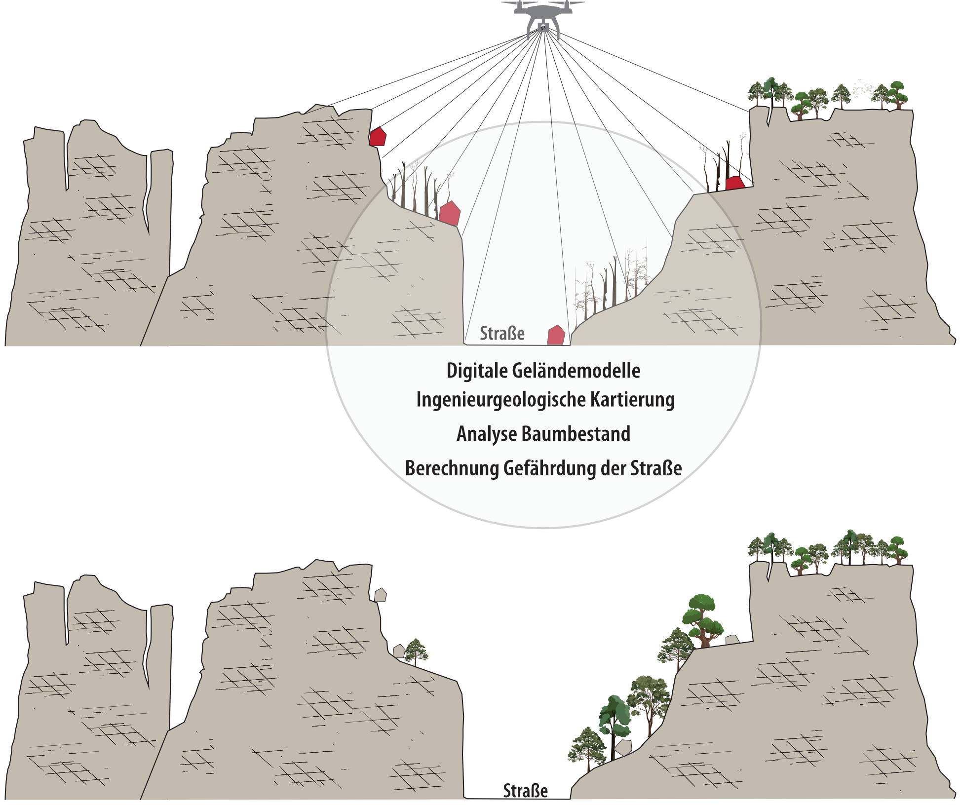 Berechnung Gefährdung Straßen und Aufforstungskonzepte
